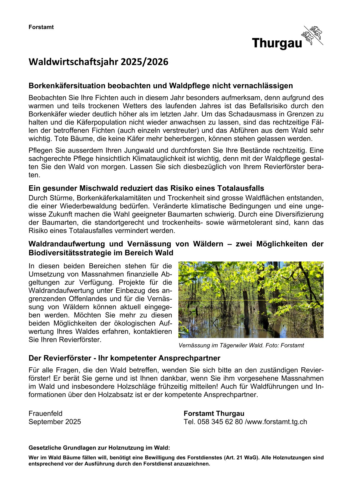 Das Forstrevier Frauenfeld ist wie folgt organisiert: